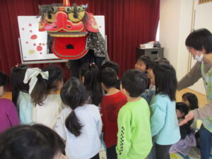 お正月の由来のお話しを聞いていたら、獅子舞が来たんだ!