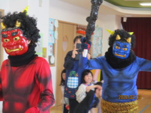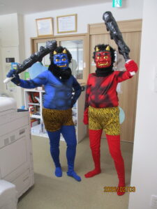とお話しを聞いていたら、強そうな赤鬼と青鬼が来たんだ!